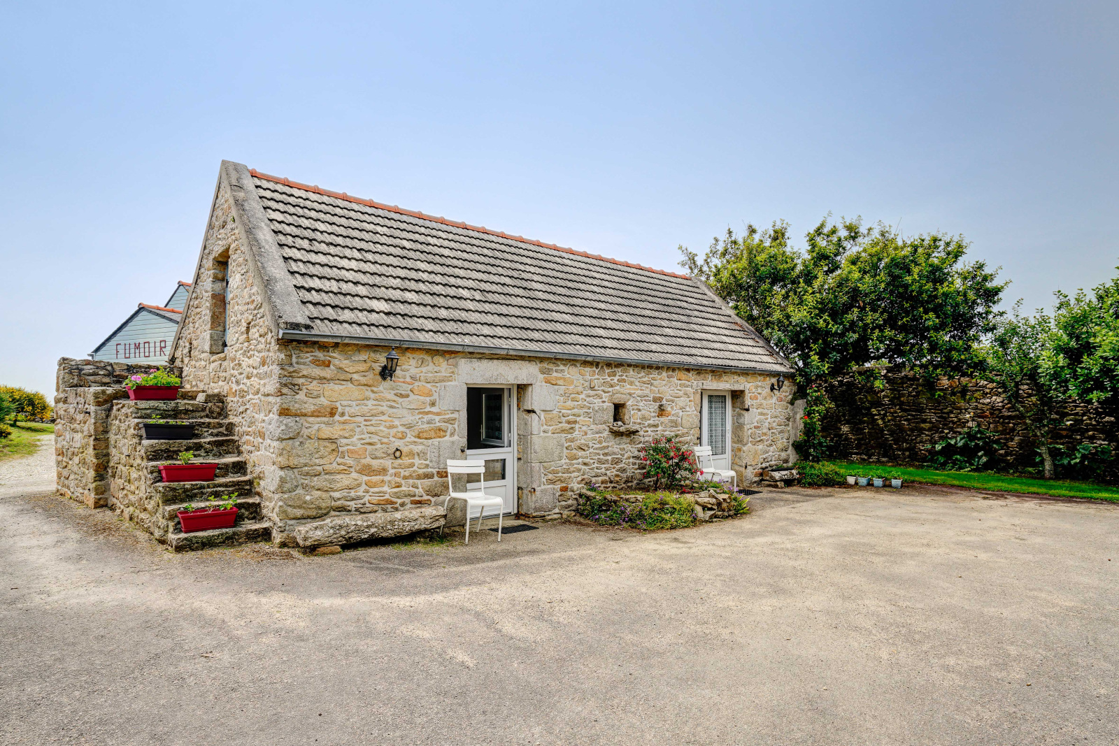 À l’extérieur, vous profiterez de deux buanderies, d’une terrasse ensoleillée, de celliers, d’un établi, d’une cave et de nombreux espaces verts pour créer des jardins, des aires de jeux ou des espaces de détente. Le terrain, vaste et arboré, garantit calme, intimité et dépaysement total.